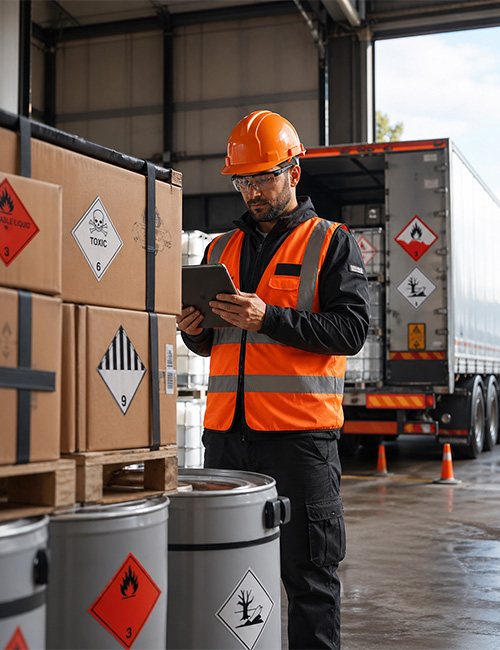 Als ECOMAS Logistik GmbH bieten wir im Bereich Gefahrguttransport einen zuverlässigen und professionellen Service mit jahrelanger Erfahrung. Der Transport von Chemikalien, entzündbaren Gasen, Explosivstoffen und anderen gefährlichen Materialien erfordert höchste Präzision. Sicherheit, Umweltschutz und die Einhaltung gesetzlicher Anforderungen sind für uns von größter Priorität.